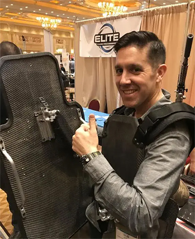 与以上这款碳纤维防弹头盔同时出场的还有一款碳纤维防弹盾牌,重量为15.9KG,是传统防弹盾牌无法企及的重量,要知道传统防弹盾牌往往都是20KG起步的。